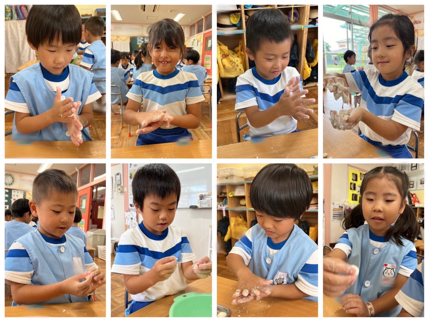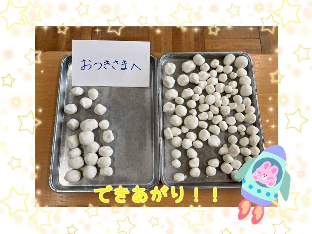 まんまる満月そっくりなお団子になるよう、みんなでこねこね、ころころ、お団子作り🎶