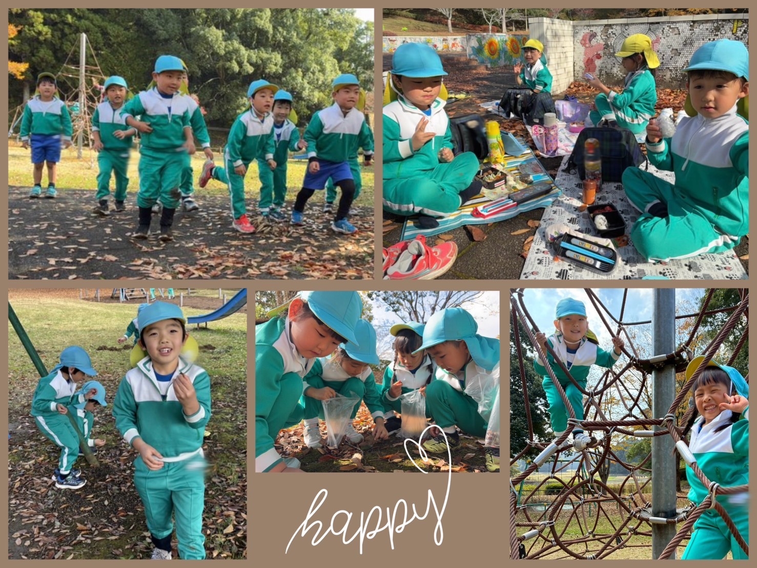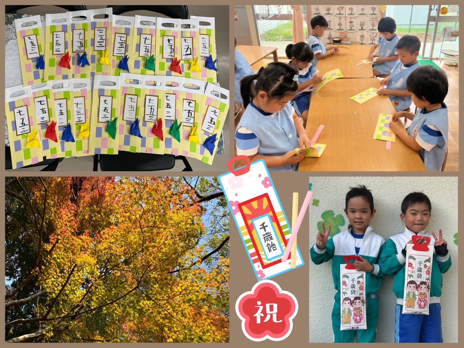 七五三のお参りはもちろん、秋の自然を感じながら、戸外で思いきり遊んできたすみれ組(年長)です!!