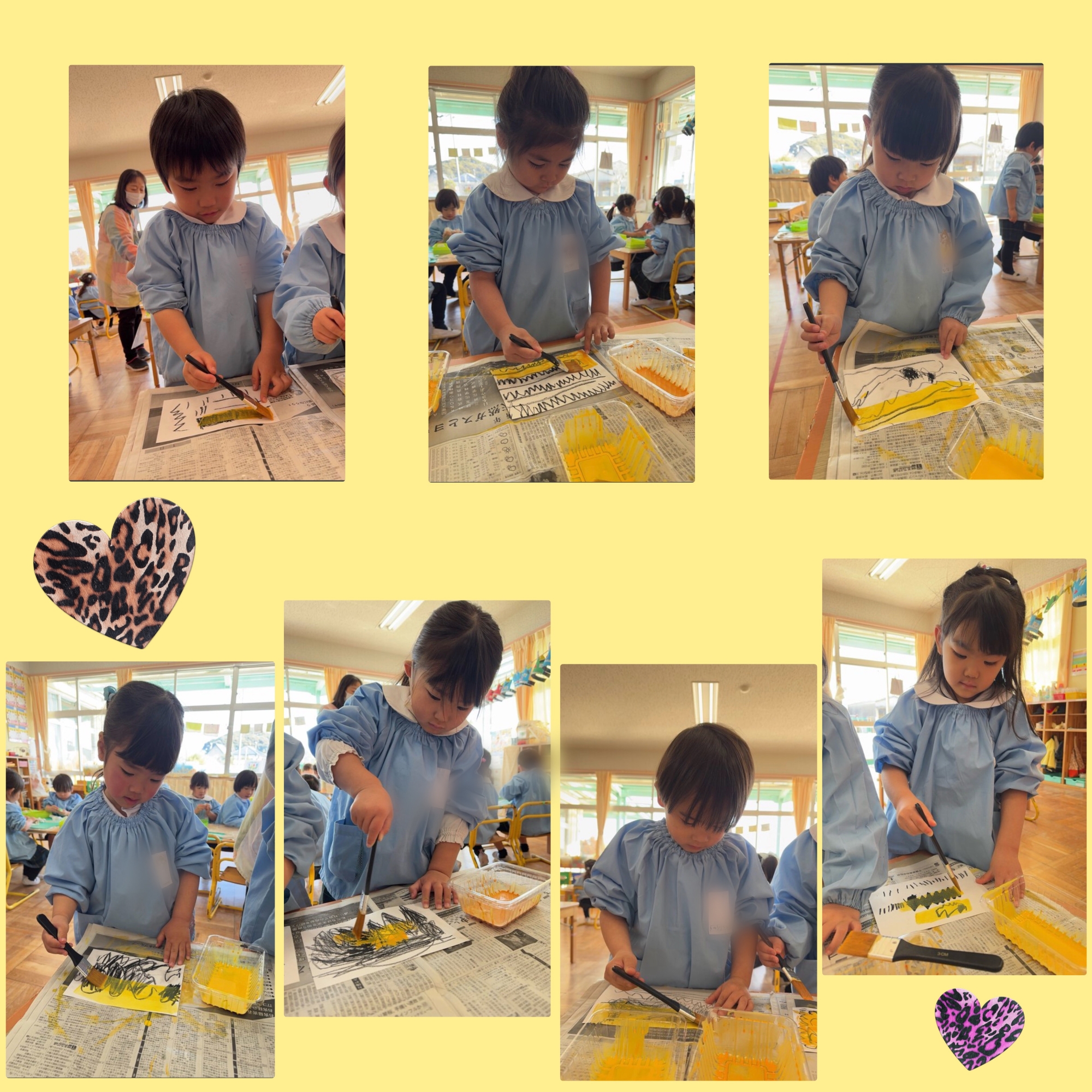 豆入れは、鬼のパンツの歌にちなみ、クレヨンでトラの模様を表現し、はじき絵を楽しみました!絵の具がはじく様子に驚いていたつくし組さんでした🐯