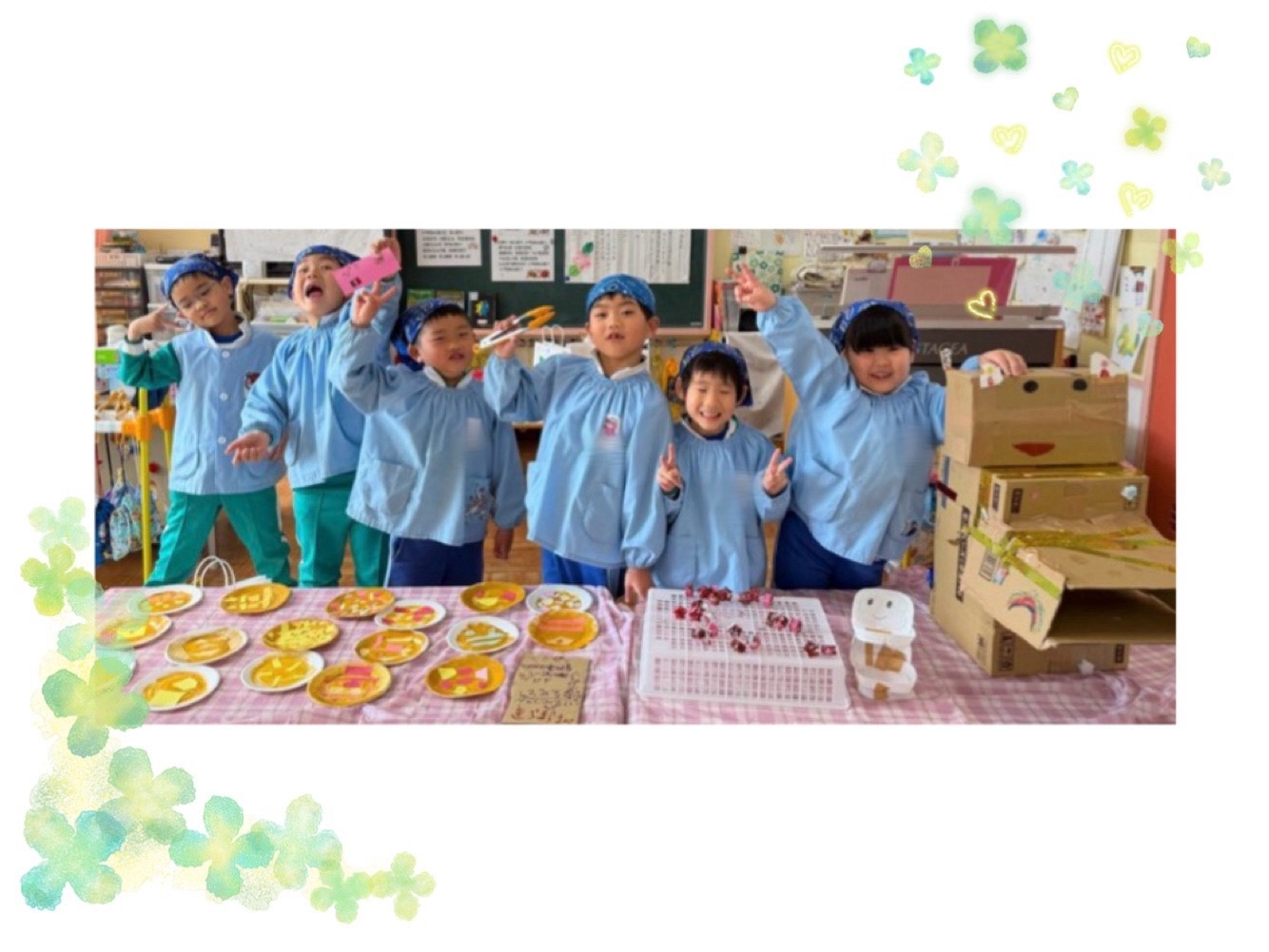 お店屋さんごっこをするにあたり、どんなお店にするか、チームでよ〜く話し合い、材料の準備から、商品の製作、お店の運営まで、全て子どもたちが協力して行いました。