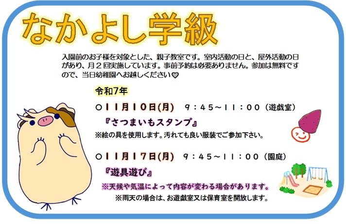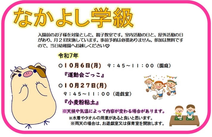 未就園児教室(なかよし学級)のご案内